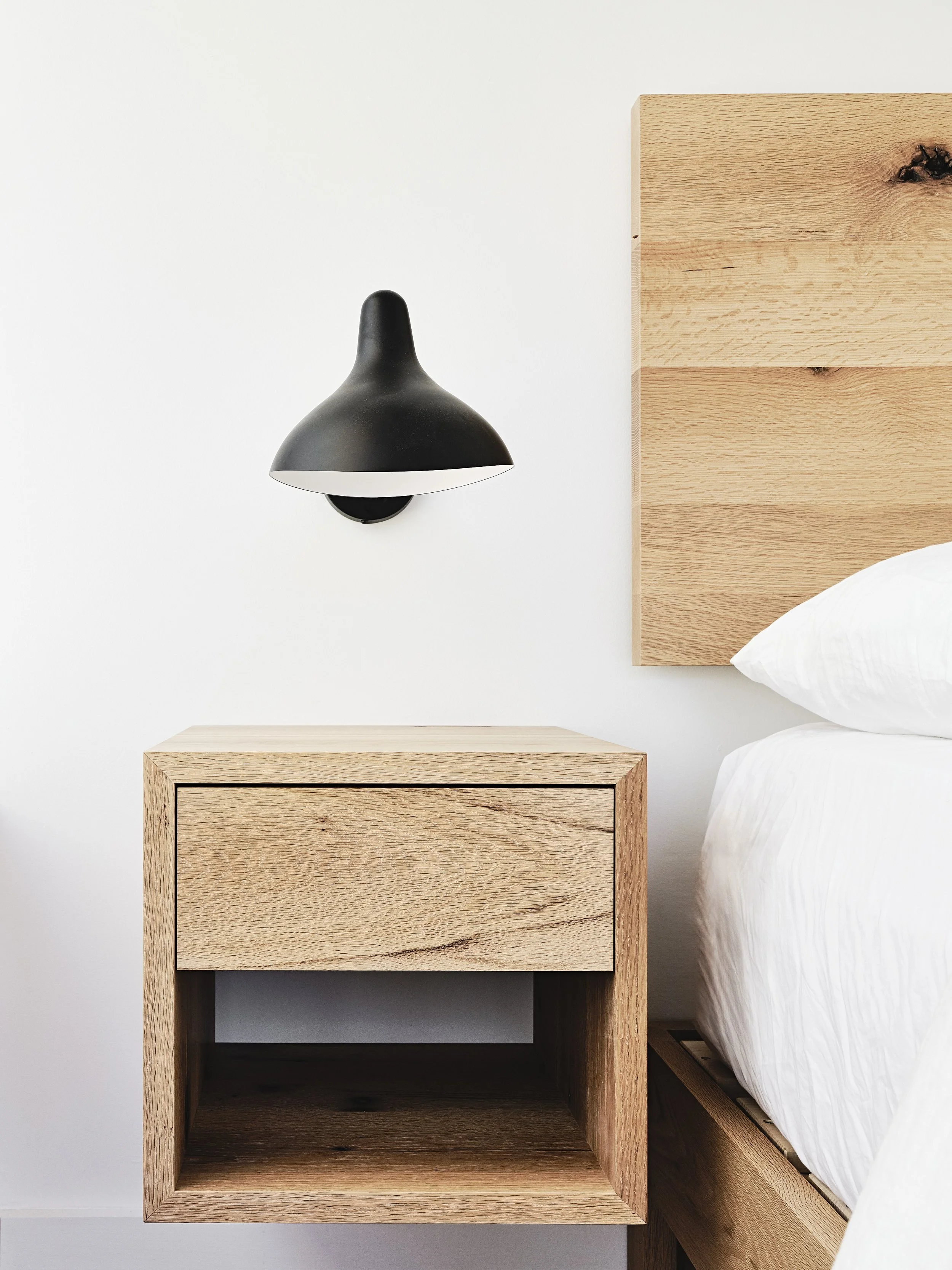 The Axis Nightstand pairs minimalist design with practical functionality. Its clean, rectangular form and floating design create a sleek, modern look while maximizing floor space. With a spacious drawer for hidden storage and an open shelf for easy access to essentials, this nightstand blends form and function seamlessly. Perfectly suited to complement the Axis Bed, it brings understated elegance to any bedroom.